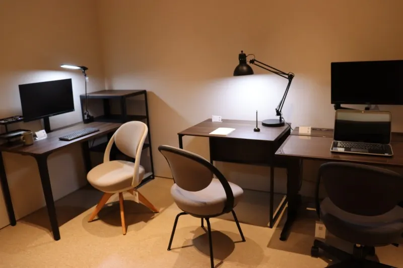 同サロンは、自宅での使用シーンをリアルに再現した空間が特徴で、書斎やゲーミングルーム、異なる床材を用いたエリアなど、実際の生活に近い環境でチェアの使用感を確かめられる。10種類以上のオカムラチェアを常設し、予約不要で座り比べができるほか、約30分の試座体験も可能である。