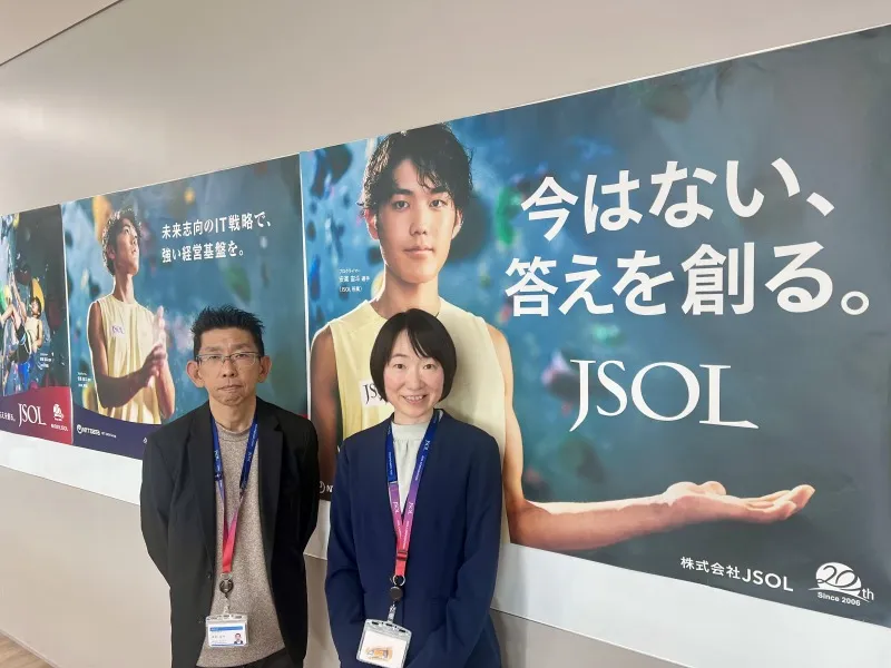 JSOLというと一般的にはあまり耳慣れない会社ですが、この広告は強烈なインパクトで非常に興味を引くものとなっています。この広告はどのように誕生し、どんなメッセージが込められているのか。JSOL経営企画本部広報部広報課の合志(ごうし)さんと渡邉さんを取材し、その背景と意図を深掘りしました。