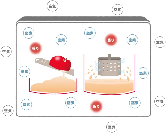 「青の森の蜜」は、JAアオレンによる高品質な原料調達と密閉搾り製法、そしてカゴメのブレンド・品質管理技術を融合させた商品である。原料には選果技術で選び抜いた青森県産ふじりんごのみを使用し、酸素に触れさせない密閉環境で搾汁することで、香りとコクを最大限に引き出した。さらに、最適比率でりんごピューレを加えることで、濃厚でまろやかな味わいを生み出し、高品質な美味しさを実現している。