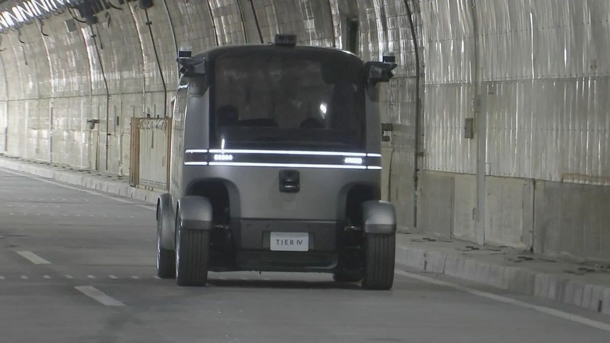 きょう、茨城県つくば市の国土技術政策総合研究所で行われた「自動物流道路」の実証実験は、大成建設が実施したもので、自動運転車両がトンネル内を400メートル走行しました。