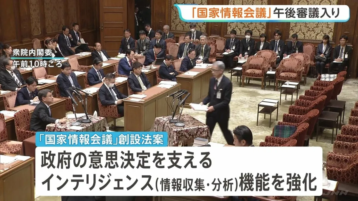 政府のインテリジェンス機能の司令塔となる「国家情報会議」を創設する法案がきょう午後、委員会で審議入りします。