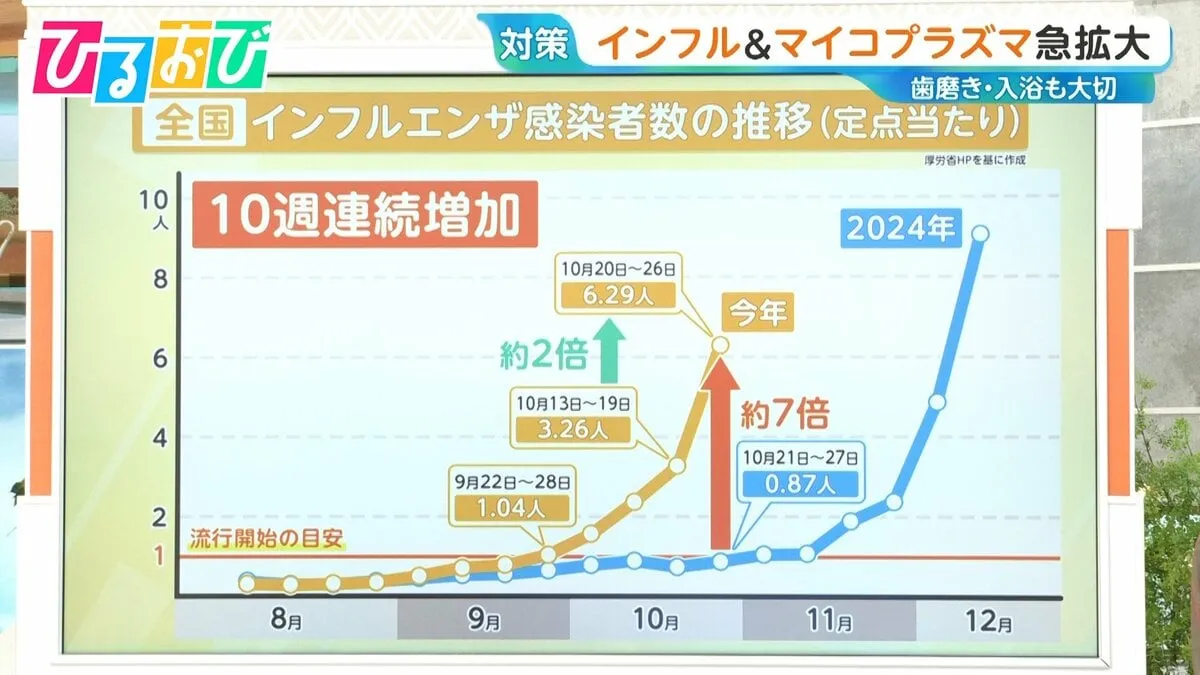 【写真を見る】インフル&マイコプラズマ急拡大 “3~5日目に咳悪化”で再受診が必要なケースも【ひるおび】