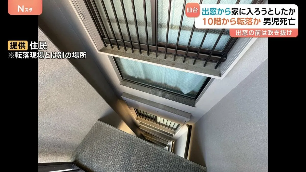 きのう、宮城県仙台市内のマンションの敷地内で倒れていた男の子が発見され、その後、死亡が確認されました。男の子は家の鍵を持っておらず、出窓から家に入ろうとして転落した可能性があることが分かりました。